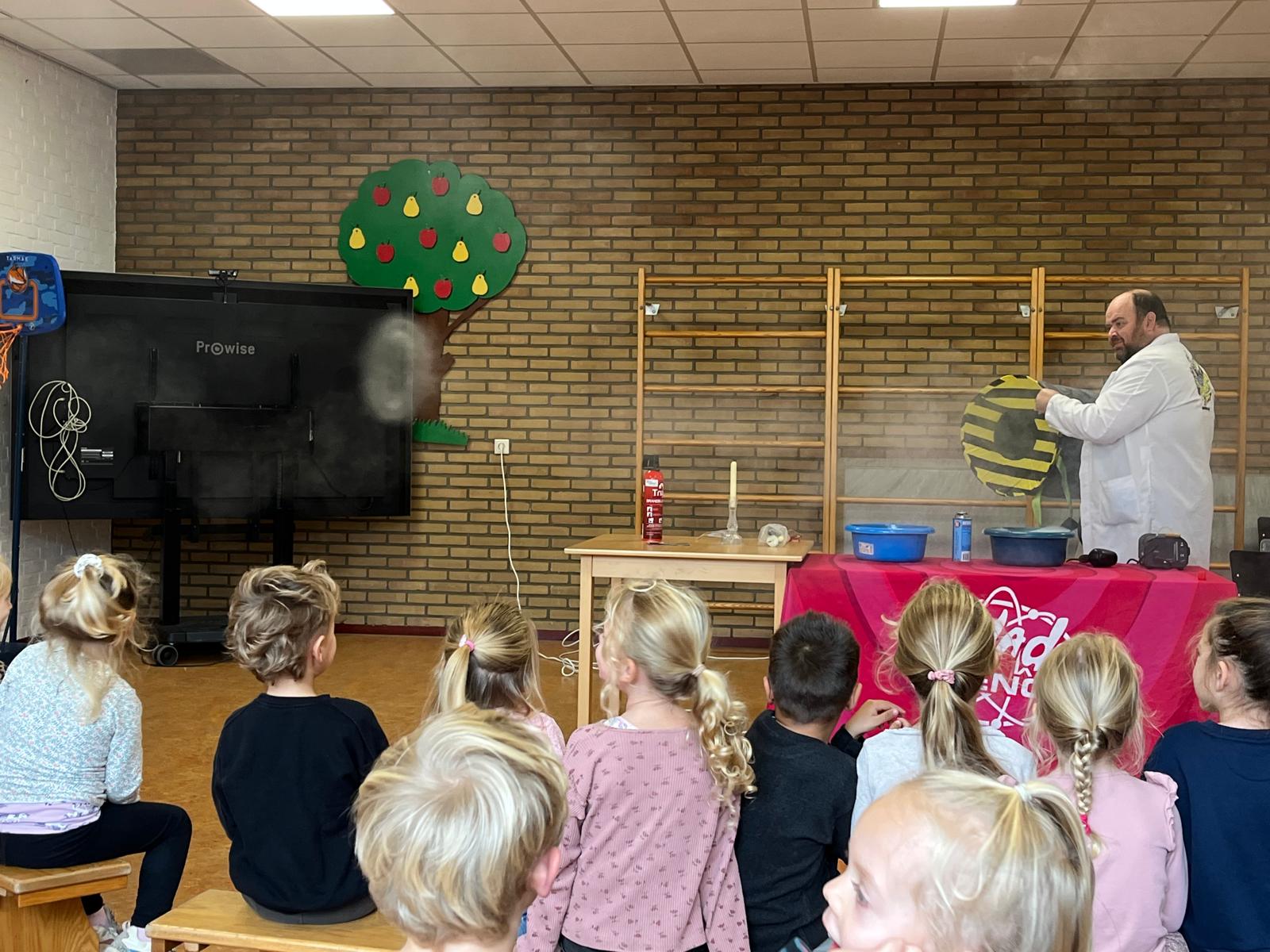 Op 22 oktober hebben wij een presentatie van MadScience gehad. Dit was een hele leuke en leerzame presentatie. Met verschillende groepen hebben we gekeken naar de elementen, water, vuur en wind.